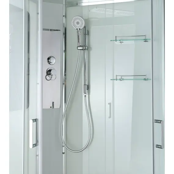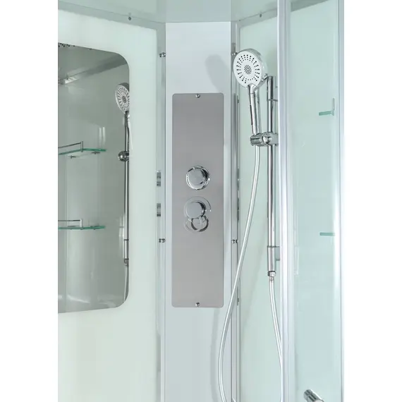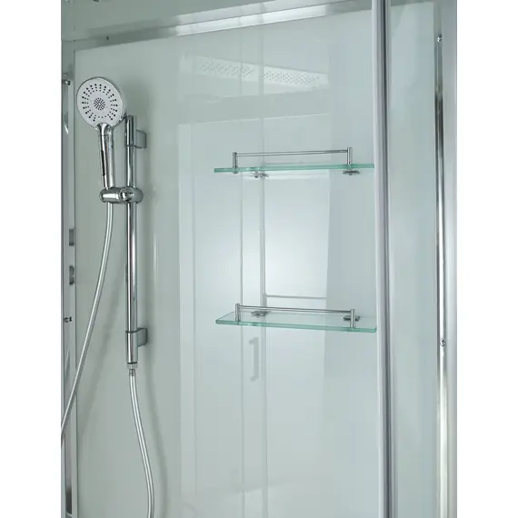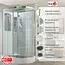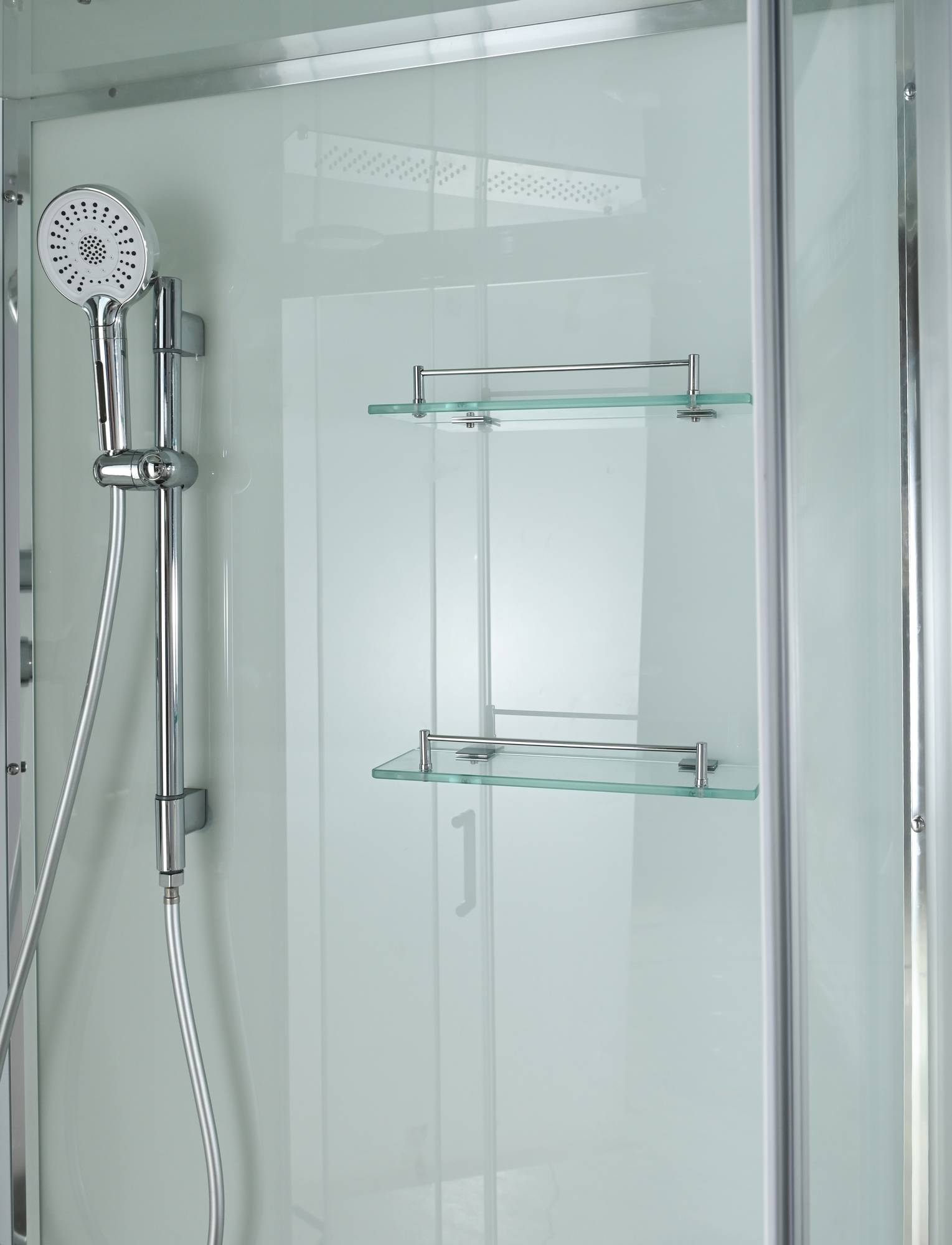 Стильная душевая кабина AvaCan сочетает в себе высокую функциональность, практичность и надежность. При изготовлении применяется безопасное закаленное стекло, надежно фиксируемое алюминиевым профилем. Профиль сделан из алюминия повышенной прочности. Сборка без силикона (увеличивает срок службы, защищает от протечек), внутренняя сборка (облегчает установку и ревизию; позволяет установить в ограниченном пространстве и обойтись без демонтажа других сантехнических приборов), смеситель резьбовой (без хомутов). Съемный экран поддона (позволяет осуществлять подключение и ревизию сифона).Двойные металлические ролики дверей (распределение нагрузки на два ролика, увеличивают срок службы). Душевая штанга(позволяет регулировать по высоте ручную лейку), ручная арома-лейка с витамином С (картридж в комплекте,есть возможность замены или удаления картриджа), полочки(из стекла, с ограничителем), сифон с гидрозатвором.