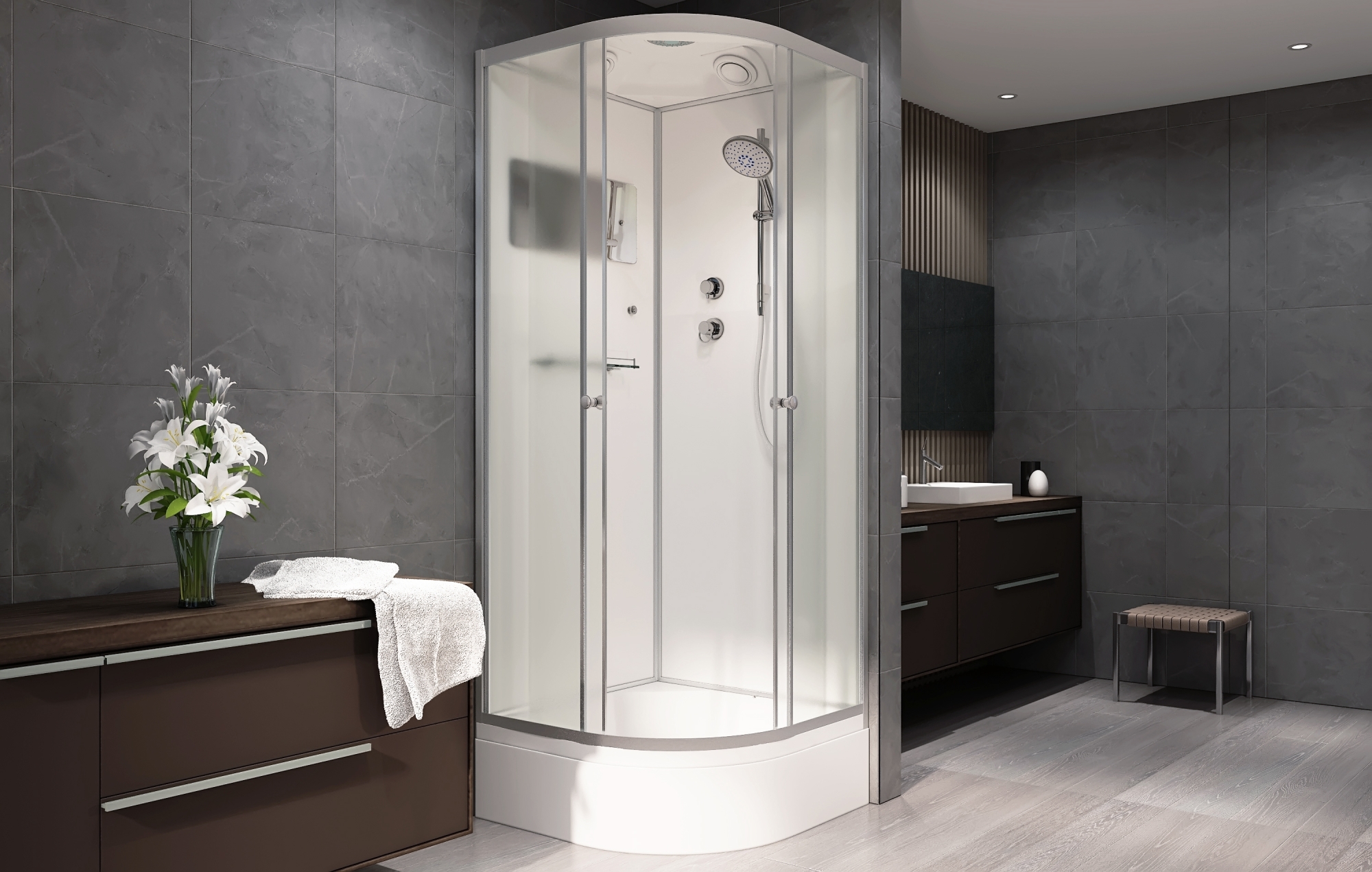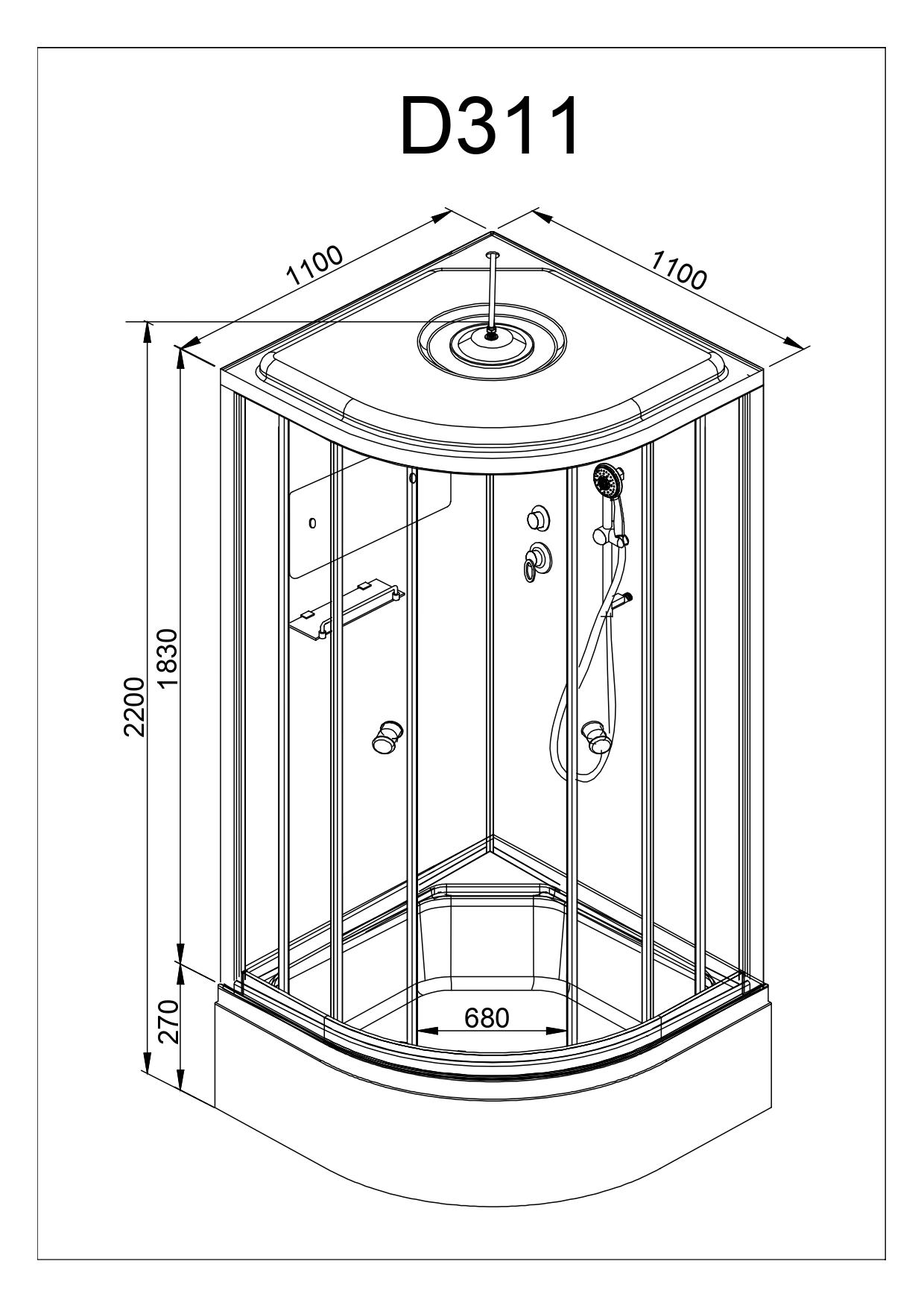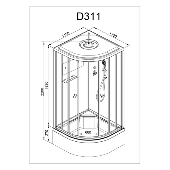 Стильная душевая кабина с внутренней сборкой AvaCan D311 S сочетает в себе высокую функциональность, практичность и надежность. Для изготовления применяют безопасное закаленное стекло толщиной 4 мм, надежно фиксируемое алюминиевым профилем. Цвет профиля хром. В комплекте сифон, полочка, зеркало, смеситель, переключатель режимов, передний съемный экран, душевой гарнитур, тропический (верхний) душ, вентиляция.