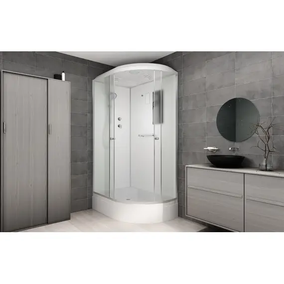 Стильная душевая кабина с внутренней сборкогй AvaCan D312 S L сочетает в себе высокую функциональность, практичность и надежность. Для изготовления применяют безопасное закаленное стекло толщиной 4 мм, надежно фиксируемое алюминиевым профилем. Цвет профиля хром. В комплекте сифон, полочка, зеркало, смеситель, переключатель режимов, передний съемный экран, душевой гарнитур, тропический (верхний) душ, вентиляция.