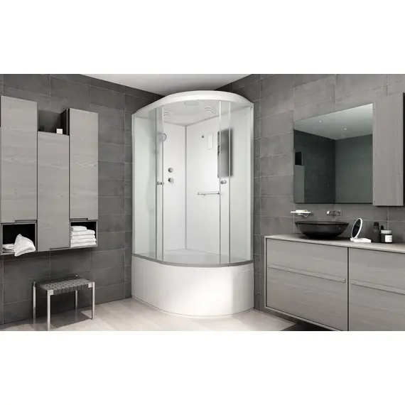 Стильная душевая кабина с внутренней сборкой AvaCan D512S L сочетает в себе высокую функциональность, практичность и надежность. Для изготовления применяют безопасное закаленное стекло толщиной 4 мм, надежно фиксируемое алюминиевым профилем. Цвет профиля хром. В комплекте сифон, крючок, полочка, зеркало, смеситель, переключатель режимов, душевой гарнитур, тропический (верхний) душ.