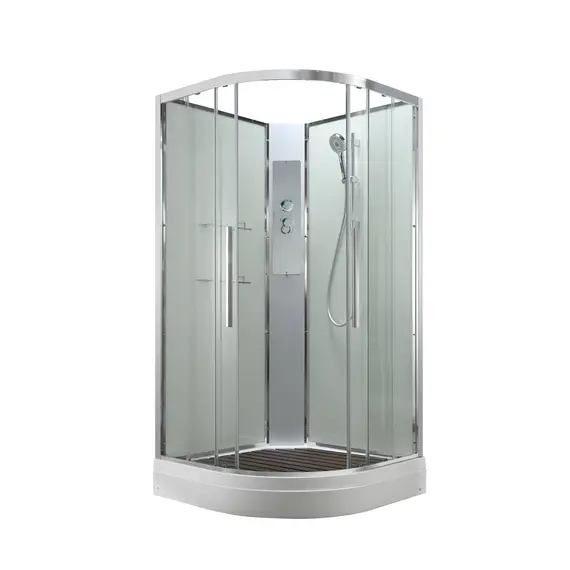 Стильная душевая кабина AvaCan EM2010NT сочетает в себе высокую функциональность, практичность и надежность. При изготовлении применяется безопасное закаленное стекло толщиной 5 мм (прозрачное), надежно фиксируемое алюминиевым профилем. Сборка без силикона (увеличивает срок службы), внутренняя сборка(облегчает установку и ревизию; позволяет установить в ограниченном пространстве), смеситель резьбовой (без хомутов). Съемный экран поддона (позволяет осуществлять ревизию сифона). Цвет профиля хром. Двойные металлические ролики дверей (увеличивают срок службы).В комплекте : душевая штанга, две полочки , арома-лейка с витамином С (картридж съемный),полимерная вставка в поддон(имитация дерева),сифон, ручки дверей из нержавейки , двойные ролики .