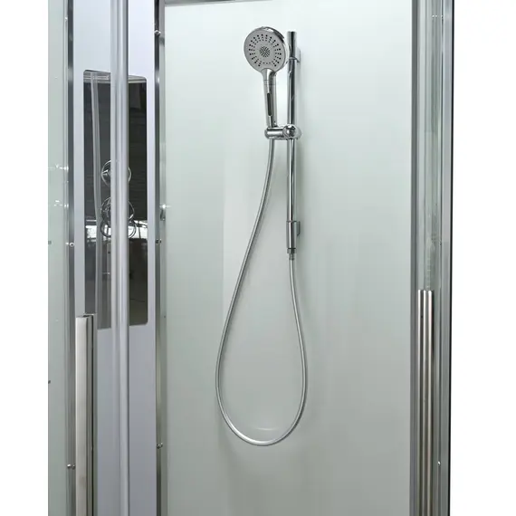 Стильная душевая кабина AvaCan EM2011T сочетает в себе высокую функциональность, практичность и надежность. При изготовлении применяется безопасное закаленное стекло толщиной 5 мм (прозрачное), надежно фиксируемое алюминиевым профилем. Сборка без силикона (увеличивает срок службы), внутренняя сборка(облегчает установку и ревизию; позволяет установить в ограниченном пространстве), смеситель резьбовой (без хомутов). Съемный экран поддона (позволяет осуществлять ревизию сифона). Цвет профиля хром. Двойные металлические ролики дверей (увеличивают срок службы).В комплекте : душевая штанга, две полочки , тропический (верхний) душ, арома-лейка с витамином С (картридж съемный),полимерная вставка в поддон(имитация дерева),сифон, ручки дверей из нержавейки , двойные ролики .