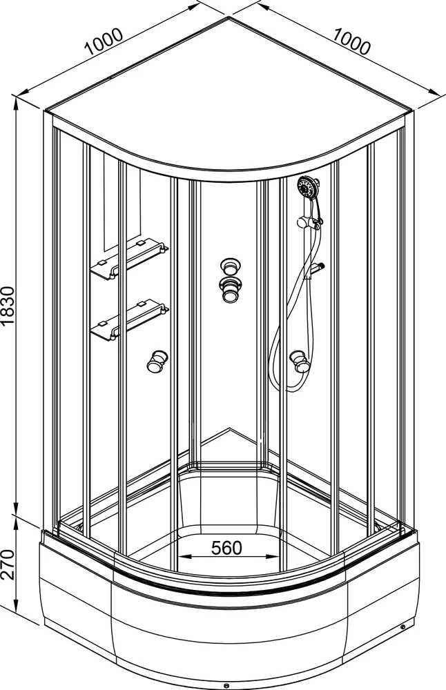 Стильная душевая кабина AvaCan EM2710 N сочетает в себе высокую функциональность, практичность и надежность. Для изготовления применяют безопасное закаленное стекло толщиной 5 мм, надежно фиксируемое алюминиевым профилем. Цвет профиля хром. В комплекте сифон, зеркало, душевой гарнитур, полочки, смеситель, переключатель режимов.