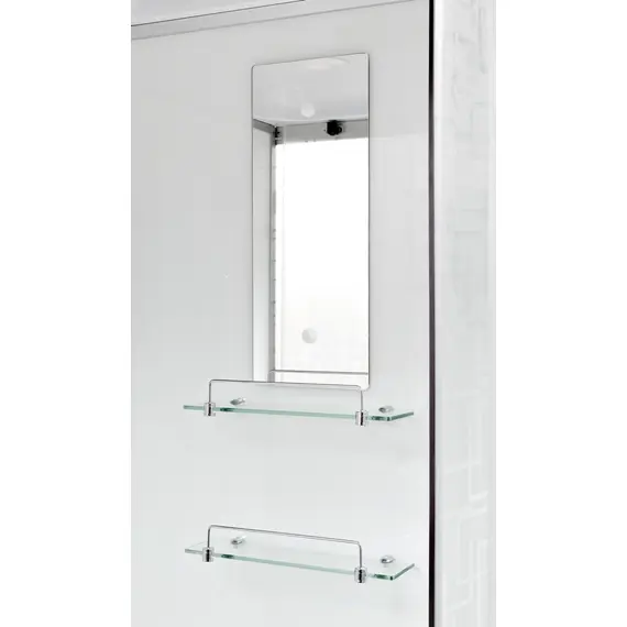 Стильная душевая кабина AvaCan EM2710 с электрикой сочетает в себе высокую функциональность, практичность и надежность. Для изготовления применяют безопасное закаленное стекло толщиной 5 мм, надежно фиксируемое алюминиевым профилем. Цвет профиля хром. В комплекте сифон, зеркало, сенсорный пульт управления, душевой гарнитур, полочки, смеситель, переключатель режимов, тропический (верхний) душ, вентиляция, радио.