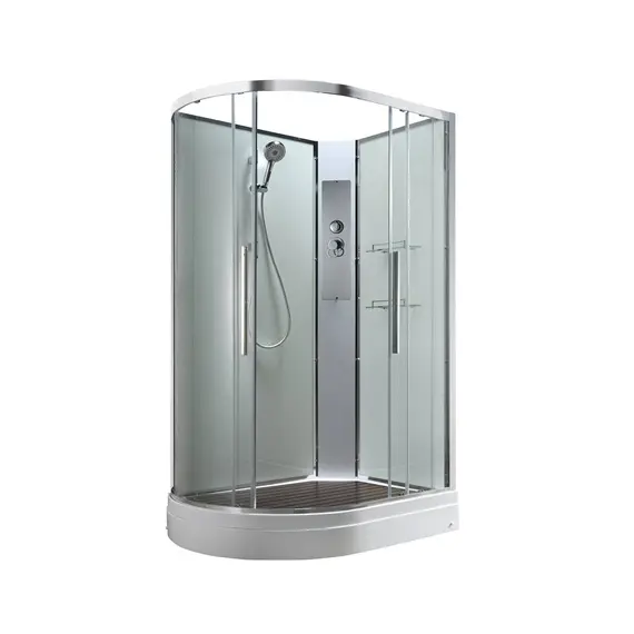Стильная душевая кабина AvaCan EM2811RNT сочетает в себе высокую функциональность, практичность и надежность. При изготовлении применяется безопасное закаленное стекло толщиной 5 мм (прозрачное), надежно фиксируемое алюминиевым профилем. Сборка без силикона (увеличивает срок службы), внутренняя сборка(облегчает установку и ревизию; позволяет установить в ограниченном пространстве), смеситель резьбовой (без хомутов). Съемный экран поддона (позволяет осуществлять ревизию сифона). Цвет профиля хром. Двойные металлические ролики дверей (увеличивают срок службы).В комплекте : душевая штанга, две полочки , арома-лейка с витамином С (картридж съемный),полимерная вставка в поддон(имитация дерева),сифон, ручки дверей из нержавейки , двойные ролики .