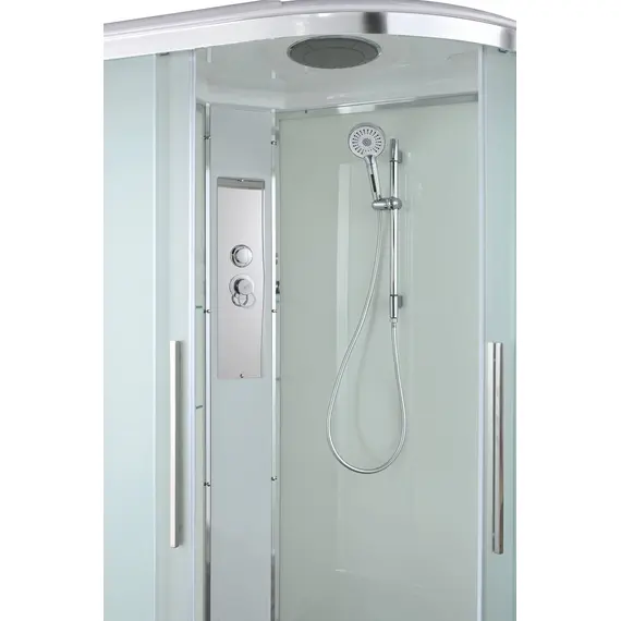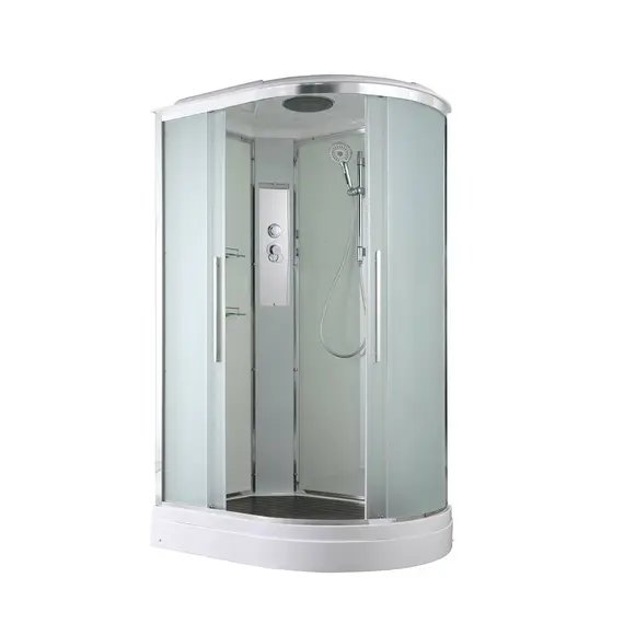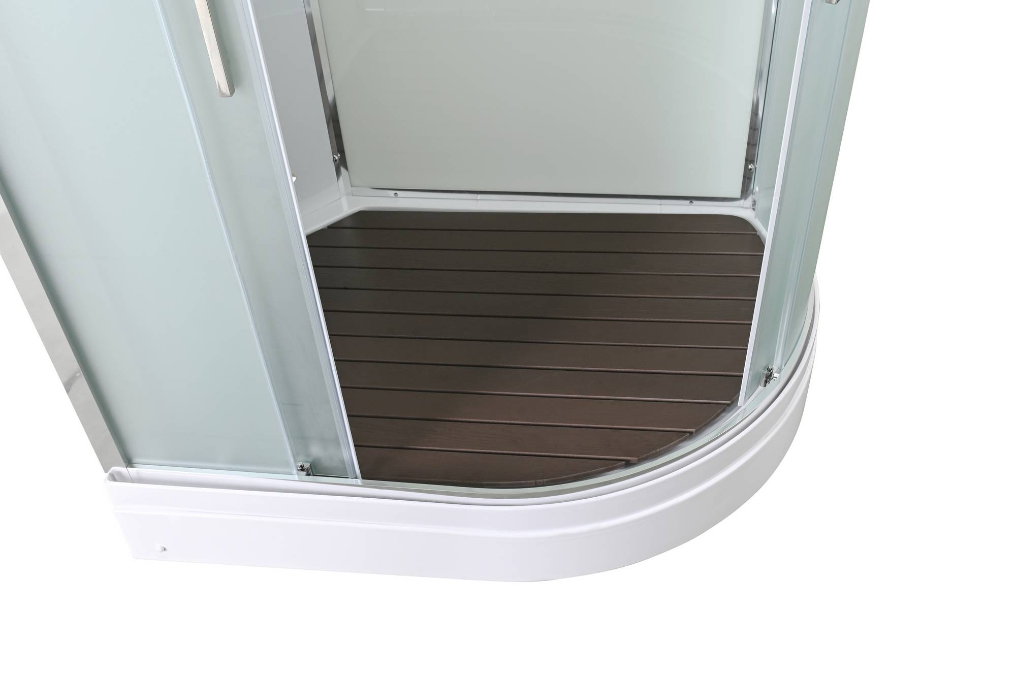 Стильная душевая кабина AvaCan EM2812L сочетает в себе высокую функциональность, практичность и надежность. При изготовлении применяется безопасное закаленное стекло толщиной 5 мм (матовое), надежно фиксируемое алюминиевым профилем. Сборка без силикона (увеличивает срок службы), внутренняя сборка(облегчает установку и ревизию; позволяет установить в ограниченном пространстве), смеситель резьбовой (без хомутов). Съемный экран поддона (позволяет осуществлять ревизию сифона). Цвет профиля хром. Двойные металлические ролики дверей (увеличивают срок службы).В комплекте : душевая штанга, две полочки , тропический (верхний) душ, арома-лейка с витамином С (картридж съемный),полимерная вставка в поддон(имитация дерева),сифон, ручки дверей из нержавейки , двойные ролики .
