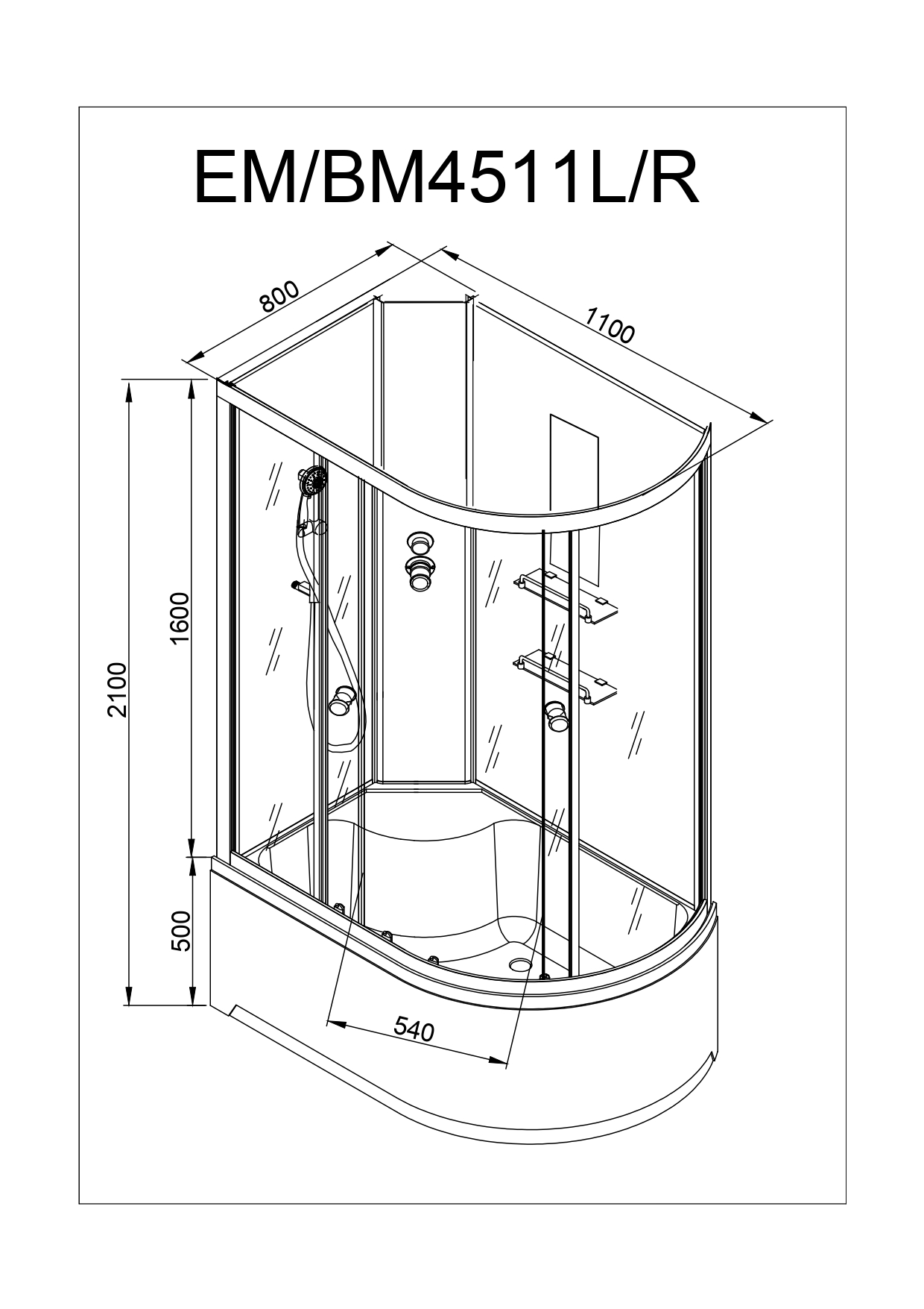 Стильная душевая кабина AvaCan EM4511 N R LED сочетает в себе высокую функциональность, практичность и надежность. Для изготовления применяют безопасное закаленное стекло толщиной 5 мм, надежно фиксируемое алюминиевым профилем. Цвет профиля хром. В комплекте зеркало, донный клапан (клик-клак), душевой гарнитур, полочки.