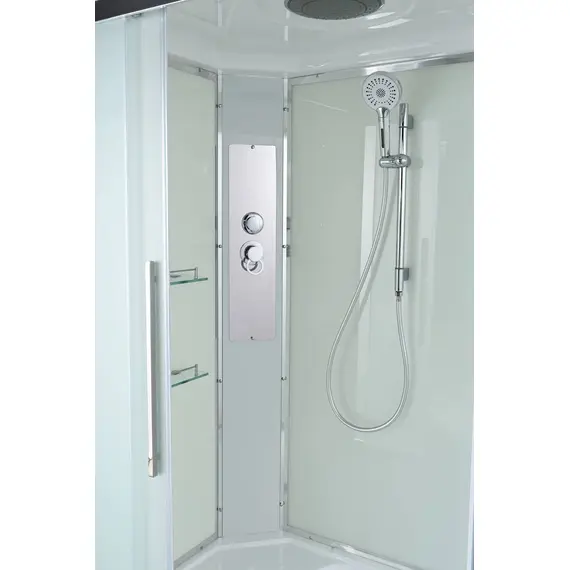 Стильная душевая кабина AvaCan сочетает в себе высокую функциональность, практичность и надежность. При изготовлении применяется безопасное закаленное стекло, надежно фиксируемое алюминиевым профилем. Профиль сделан из алюминия повышенной прочности. Сборка без силикона (увеличивает срок службы, защищает от протечек), внутренняя сборка (облегчает установку и ревизию; позволяет установить в ограниченном пространстве и обойтись без демонтажа других сантехнических приборов), смеситель резьбовой (без хомутов). Съемный экран поддона (позволяет осуществлять подключение и ревизию сифона).Двойные металлические ролики дверей (распределение нагрузки на два ролика, увеличивают срок службы). Душевая штанга(позволяет регулировать по высоте ручную лейку), ручная арома-лейка с витамином С (картридж в комплекте,есть возможность замены или удаления картриджа), полочки(из стекла, с ограничителем), сифон с гидрозатвором.