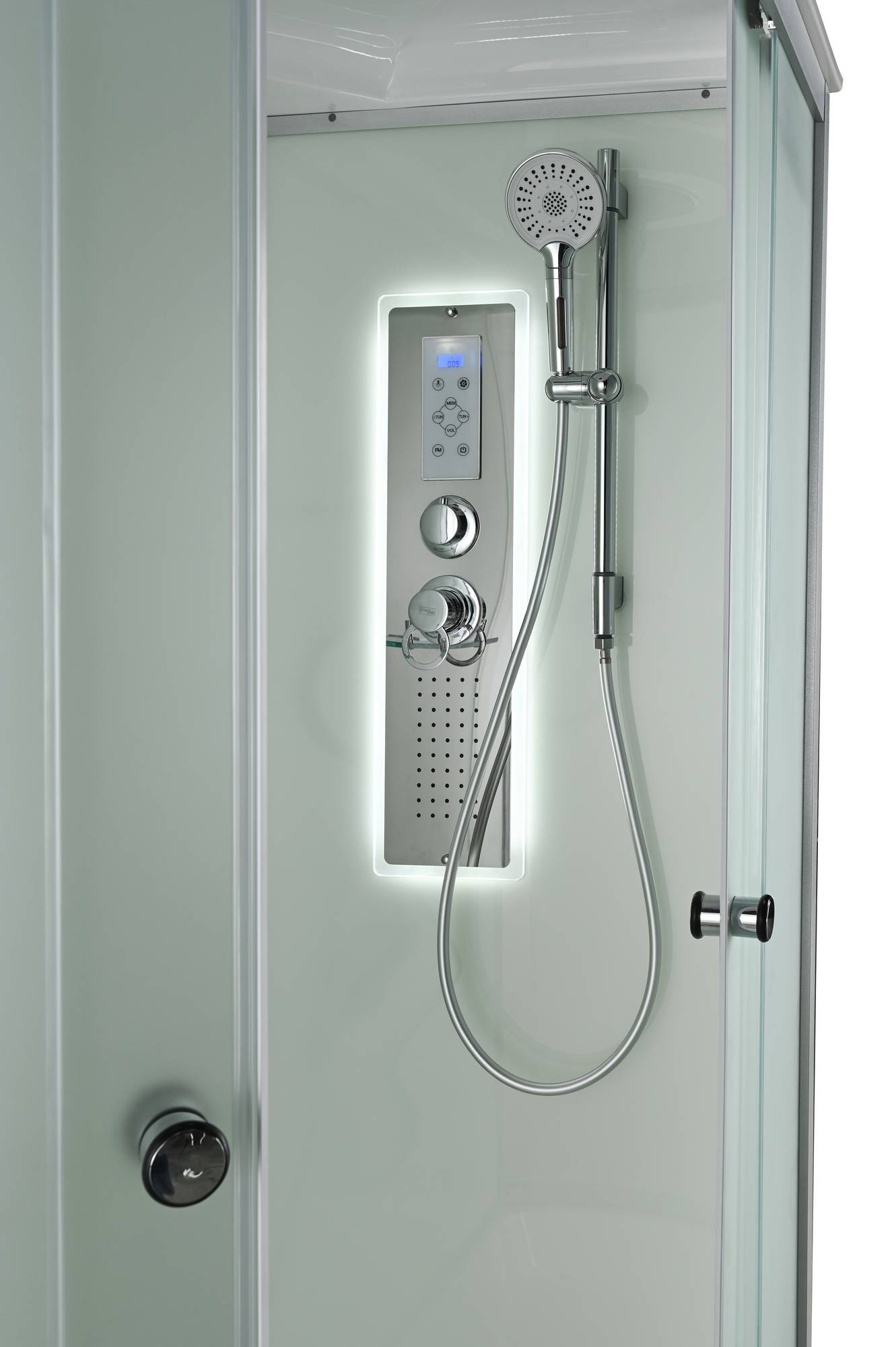 Стильная душевая кабина AvaCan D 3012L LED сочетает в себе высокую функциональность, практичность и надежность. При изготовлении применяется безопасное закаленное стекло толщиной 4 мм (матовое), надежно фиксируемое алюминиевым профилем. Сборка без силикона (увеличивает срок службы), внутренняя сборка(облегчает установку и ревизию; позволяет установить в ограниченном пространстве), смеситель резьбовой (без хомутов). Съемный экран поддона (позволяет осуществлять ревизию сифона). Цвет профиля матовый хром. Двойные металлические ролики дверей (увеличивают срок службы).В комплекте : душевая штанга, полочка, тропический (верхний) душ, арома-лейка с витамином С (картридж съемный), сенсорный пульт (блютуз, радио, LED подсветка в крыше и в центральной панели, вентелятор.)