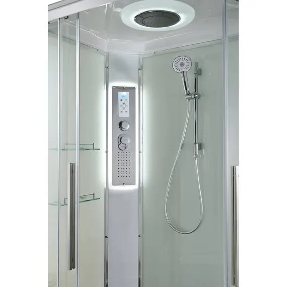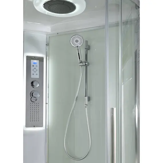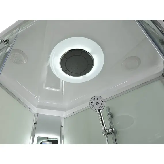 Стильная душевая кабина AvaCan EM2812LLEDT сочетает в себе высокую функциональность, практичность и надежность. При изготовлении применяется безопасное закаленное стекло толщиной 5 мм (прозрачное), надежно фиксируемое алюминиевым профилем. Сборка без силикона (увеличивает срок службы), внутренняя сборка(облегчает установку и ревизию; позволяет установить в ограниченном пространстве), смеситель резьбовой (без хомутов). Съемный экран поддона (позволяет осуществлять ревизию сифона). Цвет профиля хром. Двойные металлические ролики дверей (увеличивают срок службы).В комплекте : душевая штанга, две полочки , тропический (верхний) душ, арома-лейка с витамином С (картридж съемный),полимерная вставка в поддон(имитация дерева),сифон, ручки дверей из нержавейки , двойные ролики ,пульт сенсорный(Блютуз ,LED подсветка ,радио ,вытяжка),гидромассаж спины.