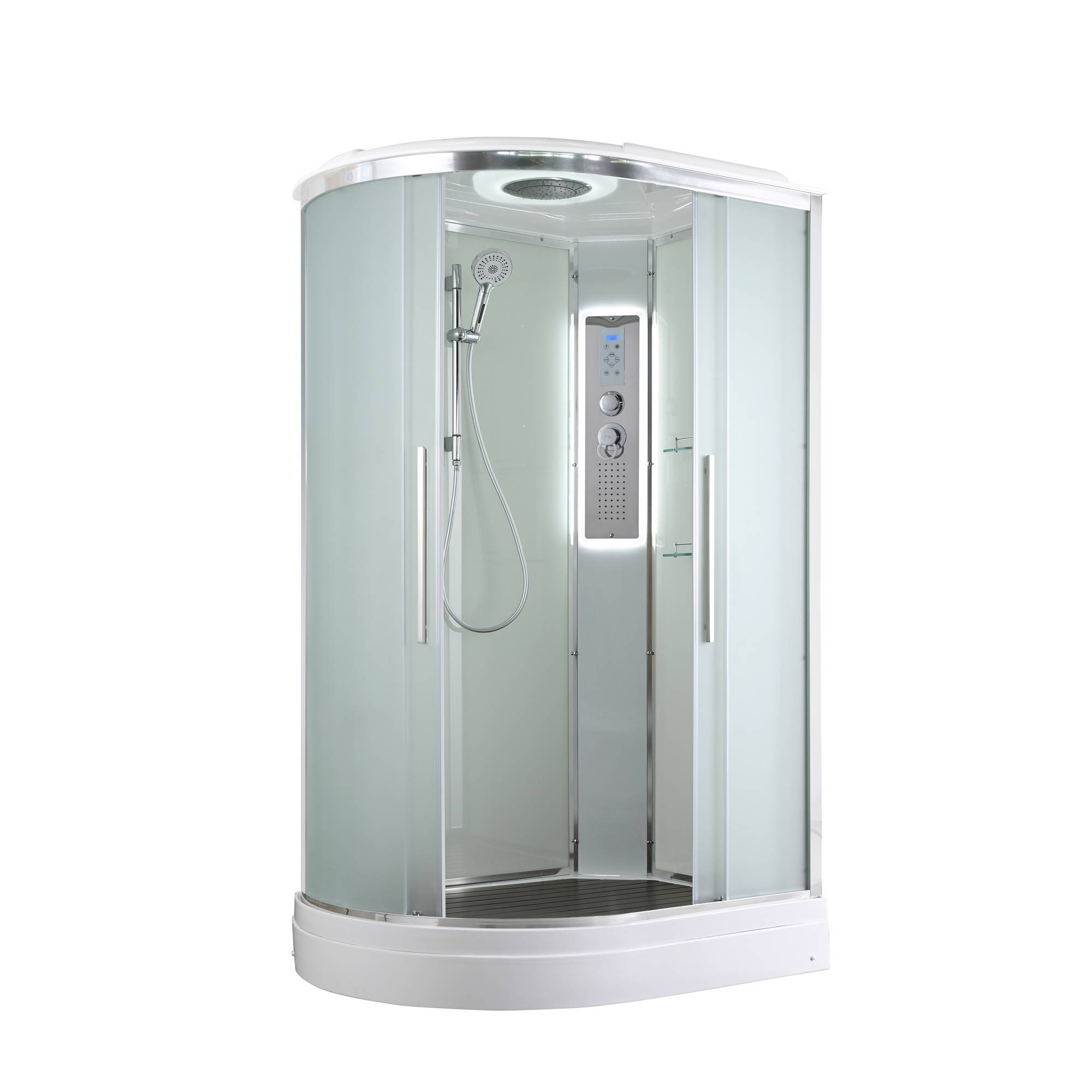 Стильная душевая кабина AvaCan EM2912RLED сочетает в себе высокую функциональность, практичность и надежность. При изготовлении применяется безопасное закаленное стекло толщиной 5 мм (матовое), надежно фиксируемое алюминиевым профилем. Сборка без силикона (увеличивает срок службы), внутренняя сборка(облегчает установку и ревизию; позволяет установить в ограниченном пространстве), смеситель резьбовой (без хомутов). Съемный экран поддона (позволяет осуществлять ревизию сифона). Цвет профиля  хром. Двойные металлические ролики дверей (увеличивают срок службы).В комплекте : душевая штанга, две полочки , тропический (верхний) душ, арома-лейка с витамином С (картридж съемный),полимерная вставка в поддон(имитация дерева),сифон, ручки дверей из нержавейки , двойные ролики ,пульт сенсорный(Блютуз ,LED подсветка ,радио ,вытяжка),гидромассаж спины.