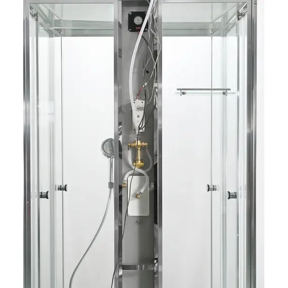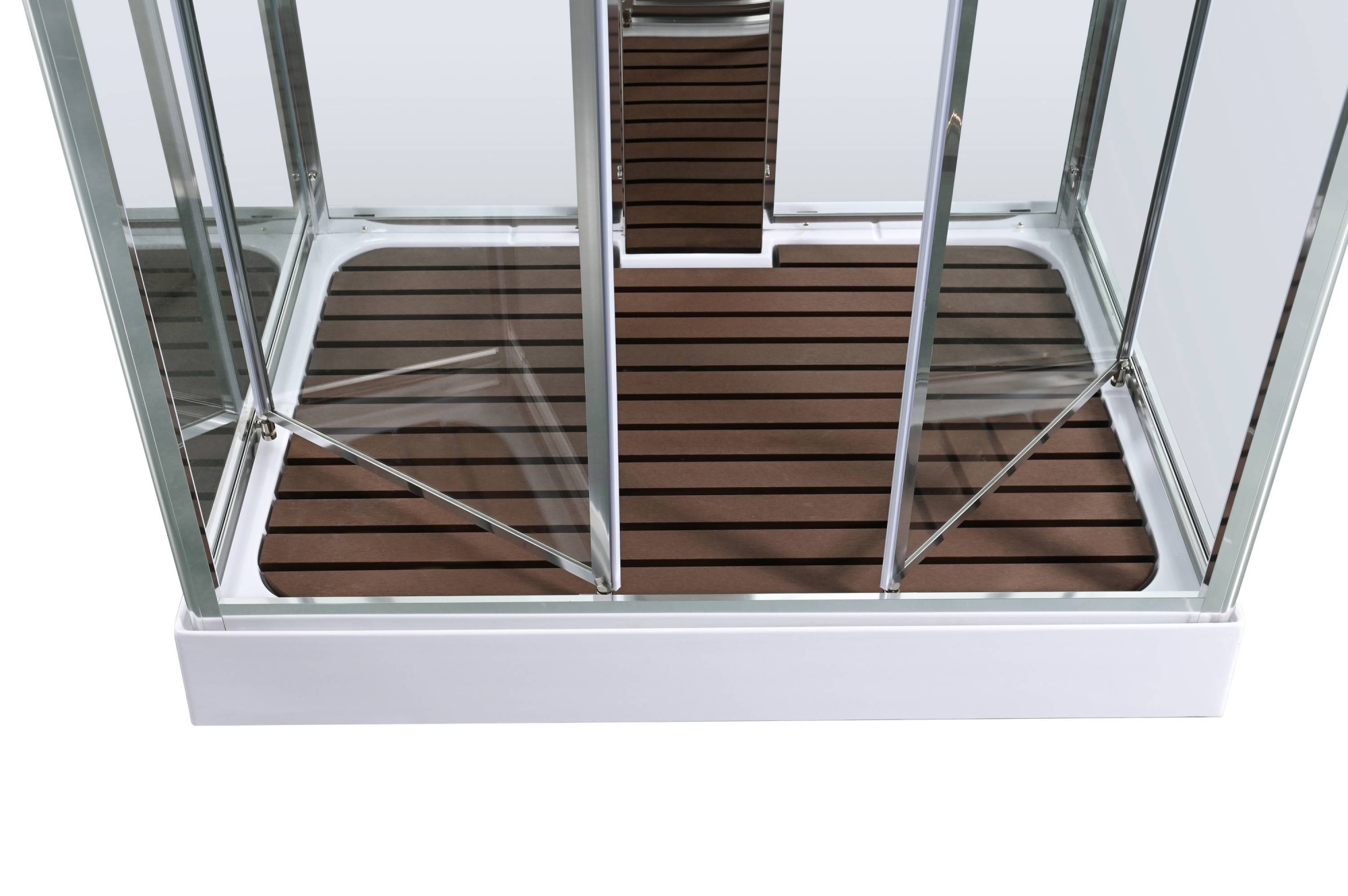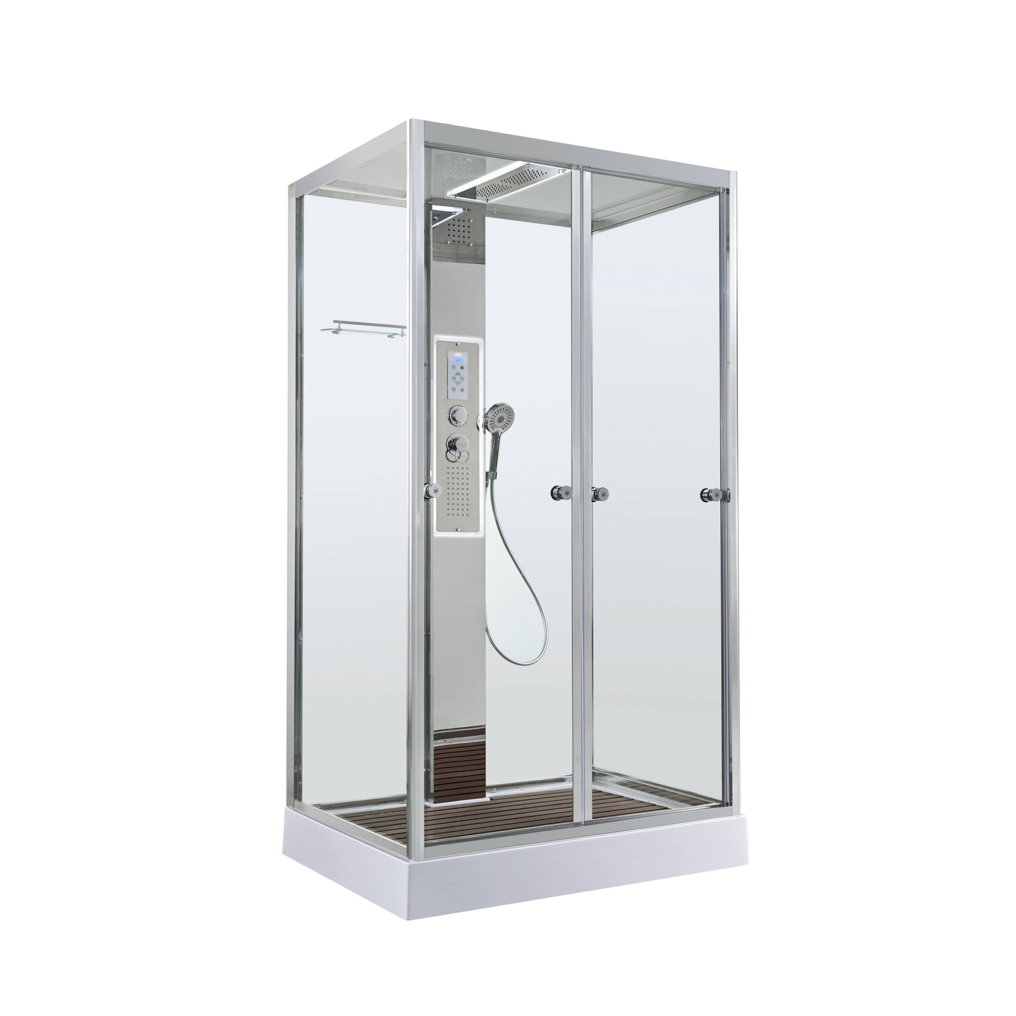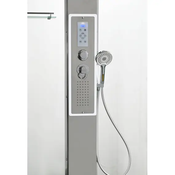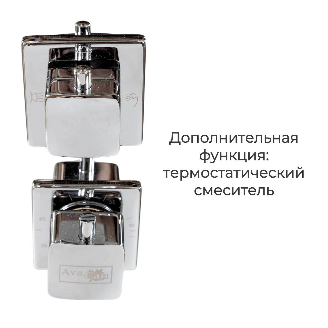 Стильная душевая кабина AvaCan сочетает в себе высокую функциональность, практичность и надежность. При изготовлении применяется безопасное закаленное стекло, надежно фиксируемое алюминиевым профилем.Профиль сделан из алюминия повышенной прочности. Сборка без силикона (увеличивает срок службы, защищает от протечек), внутренняя сборка (облегчает установку и ревизию; позволяет установить в ограниченном пространстве и обойтись без демонтажа других сантехнических приборов), смеситель резьбовой (без хомутов). Съемный экран поддона (позволяет осуществлять подключение и ревизию сифона).Двойные металлические ролики дверей (распределение нагрузки на два ролика, увеличивают срок службы). Душевая штанга(позволяет регулировать по высоте ручную лейку), ручная арома-лейка с витамином С (картридж в комплекте,есть возможность замены или удаления картриджа), полочки(из стекла, с ограничителем), сифон с гидрозатвором, сенсорный пульт управления с функциями: блютуз, LED подсветка, радио, вытяжка, гидромассаж спины, тропический (верхний) душ.