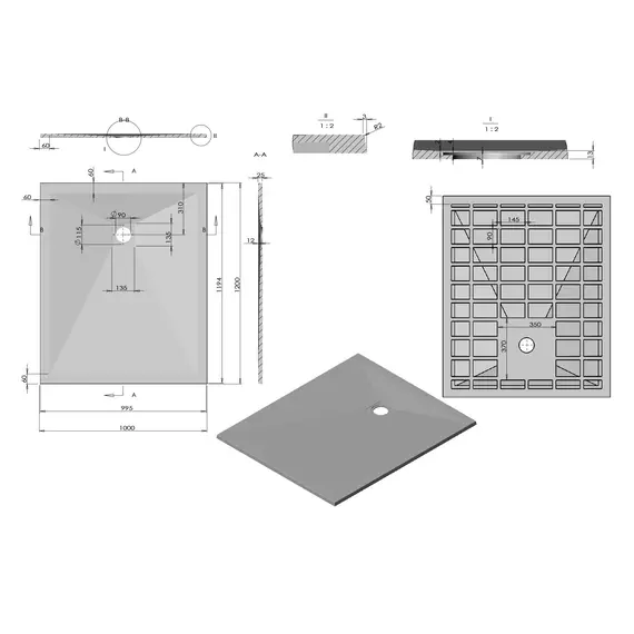 Поддон для душа из искусственного камня Vincea VST-4SR1012G,1200*1000*25, серый