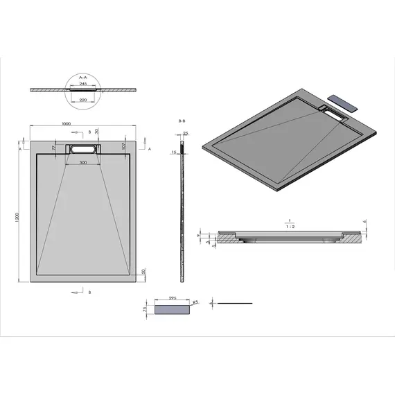 Поддон для душа из искусственного камня Vincea VST-4SRL1012W, 1000*1200*25, белый матовый