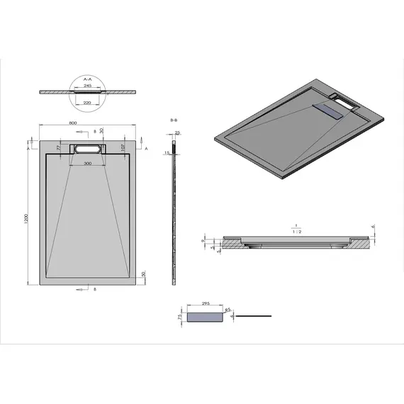 Поддон для душа из искусственного камня Vincea VST-4SRL8012G,1200*800*25, серый