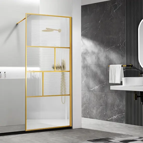 Душевая перегородка Vincea Волк-Ин (Walk-In) VSW-1HC800CFBG, 800*2000, браш. золото, стекло прозрачное/рифленое