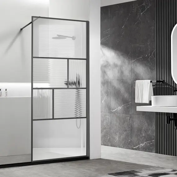 Душевая перегородка Vincea Волк-Ин (Walk-In) VSW-1HC800CFGM, 800*2000, вороненая сталь, стекло прозрачное/рифленое