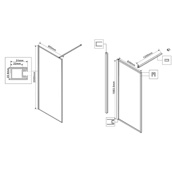 Душевая перегородка Vincea Волк-Ин (Walk-In) VSW-1HP900GWBG, 900*2000, брашированное золото, стекло лам. с золот. нит