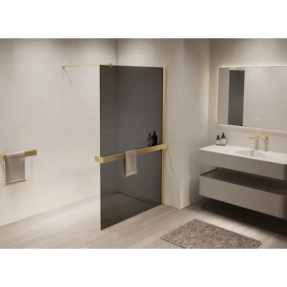 Душевая перегородка Vincea Волк-Ин (Walk-In) VSW-1HR100CGG, 1000*2000, брашированное золото, стекло тонированное