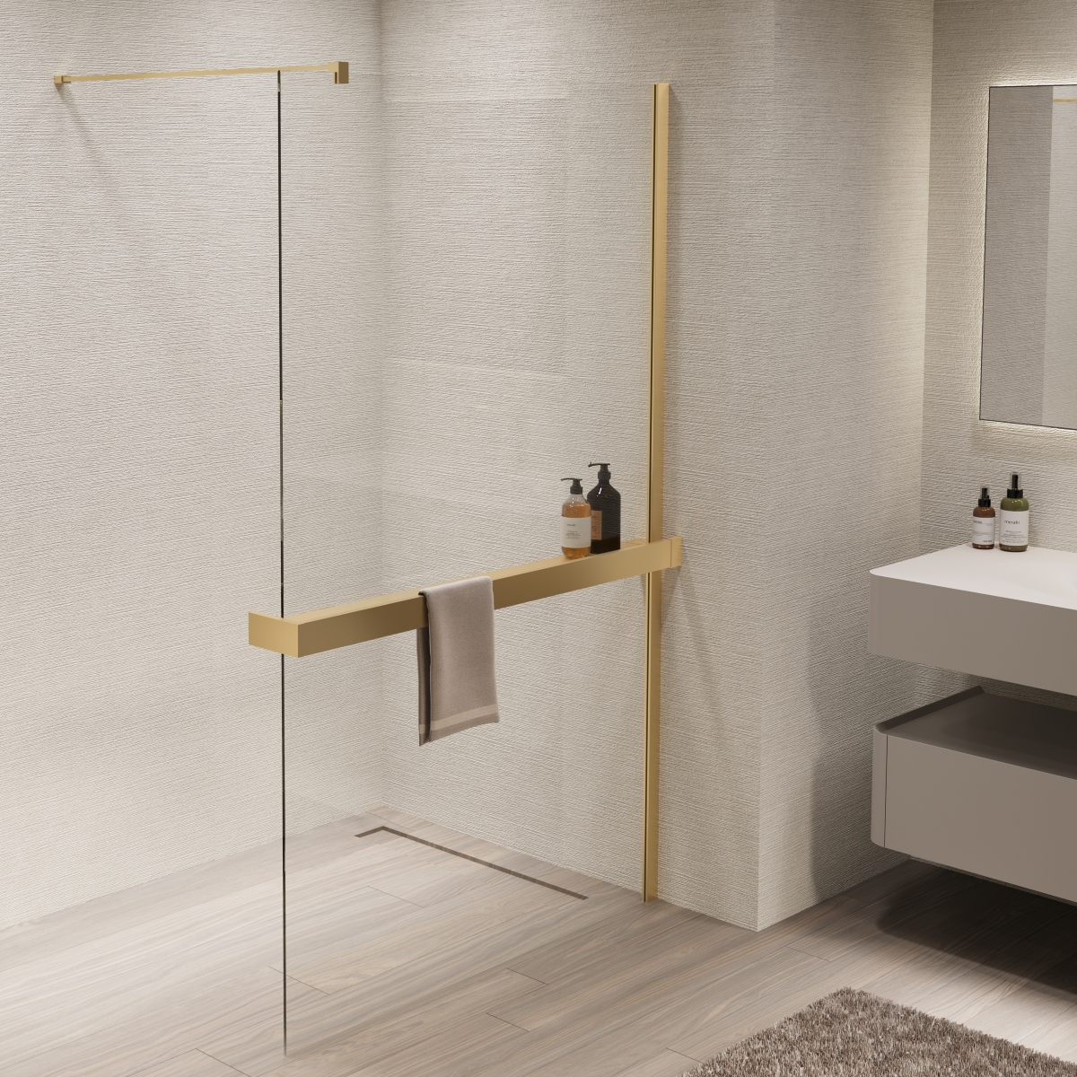 Душевая перегородка Vincea Волк-Ин (Walk-In) VSW-1HR100CLG, 1000*2000, брашированное золото, стекло прозрачное