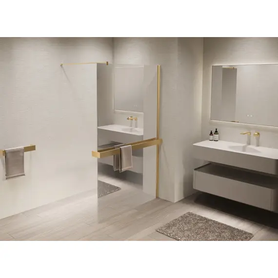 Душевая перегородка Vincea Волк-Ин (Walk-In) VSW-1HR100MRG, 1000*2000, брашированное золото, стекло зеркальное