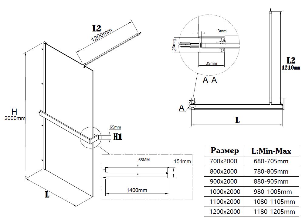 Душевая перегородка Vincea Волк-Ин (Walk-In) VSW-1HR110CLGM, 1100*2000, вороненая сталь, стекло прозрачное