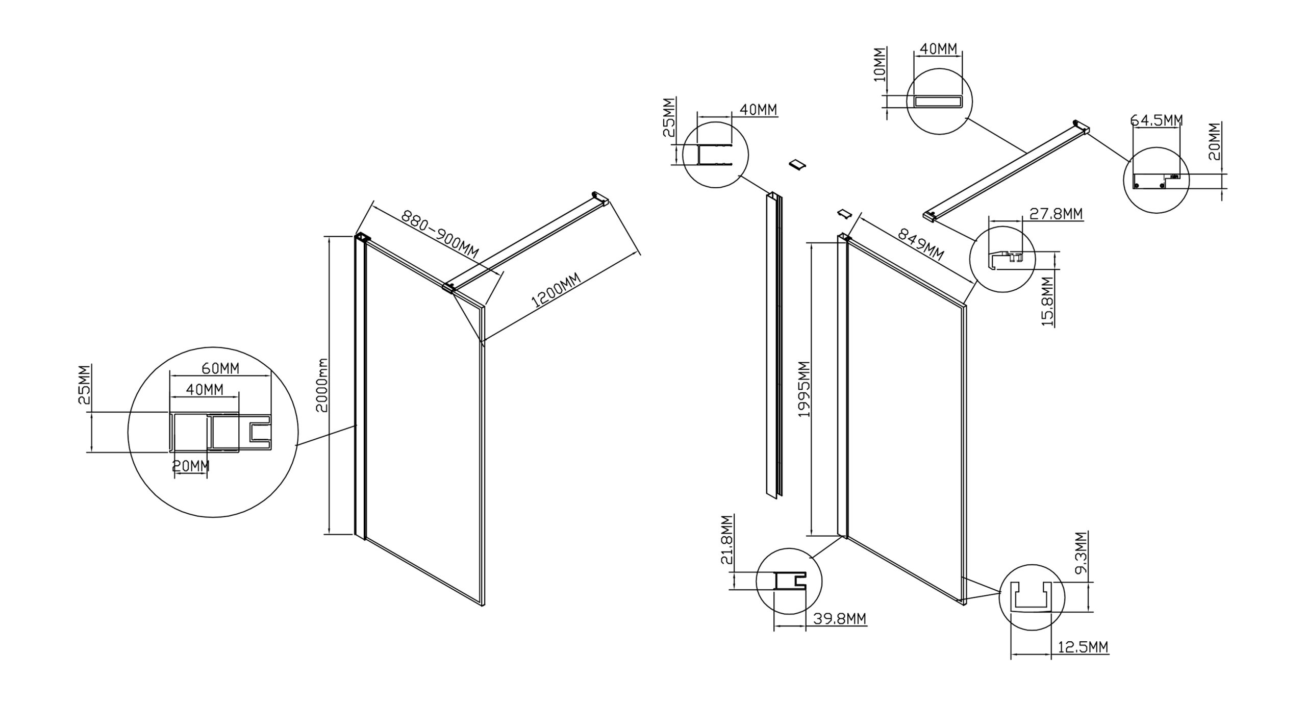 Душевая перегородка Vincea Волк-Ин (Walk-In) VSW-1HS900CLB, 900*2000, черный матовый, стекло прозрачное