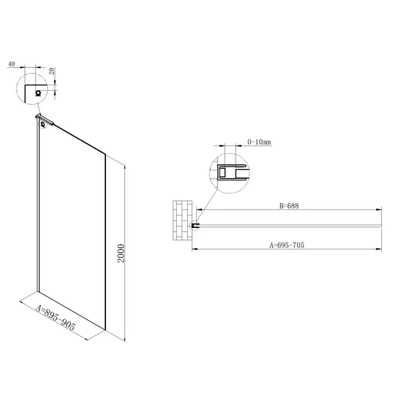 Душевая перегородка Vincea Волк-Ин (Walk-In) VSW-7HA700CLGM, 700*2000, вороненая сталь, стекло прозрачное