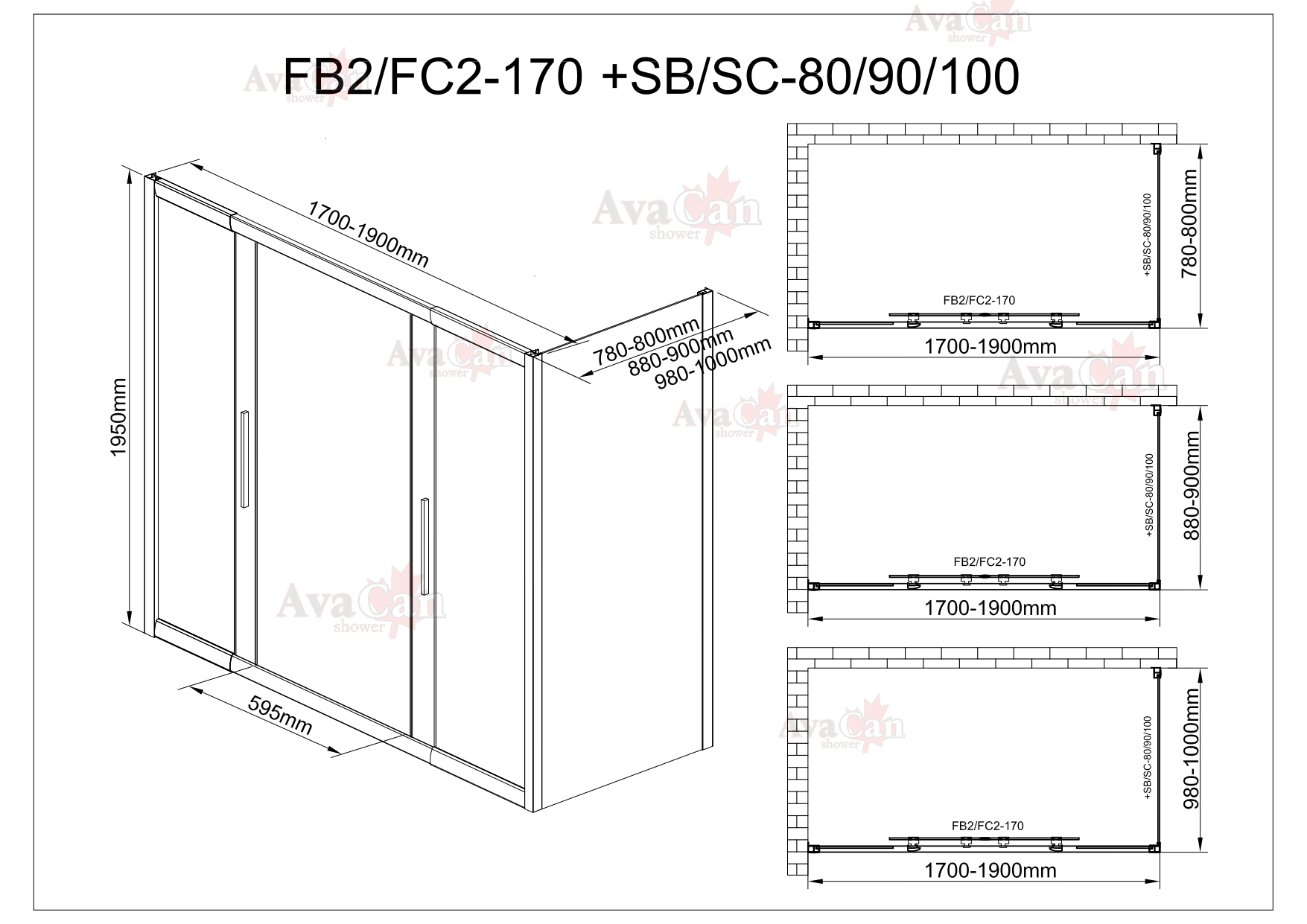 Душевой уголок AvaCan FB2 170-190 + SB80 MT