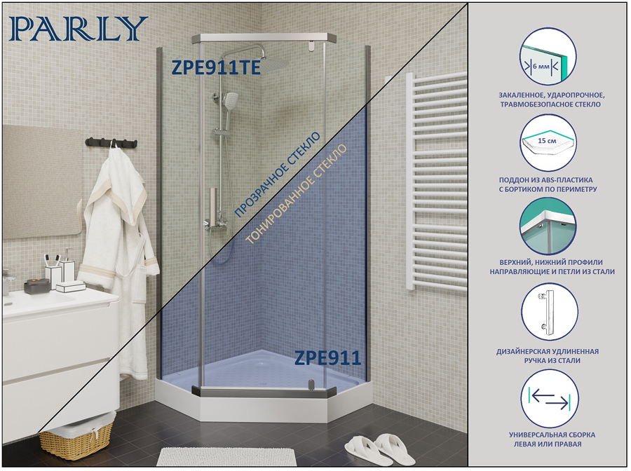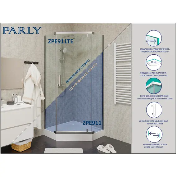 Уголок ZPE911TE душевой PARLY с поддоном (90х90х192)