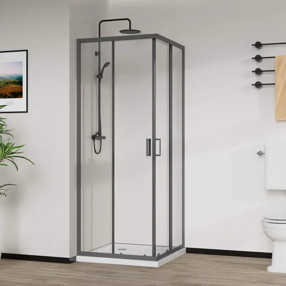 Душевой уголок Vincea City VSS-5CT900CLGM, 900*900, вороненая сталь, стекло прозрачное