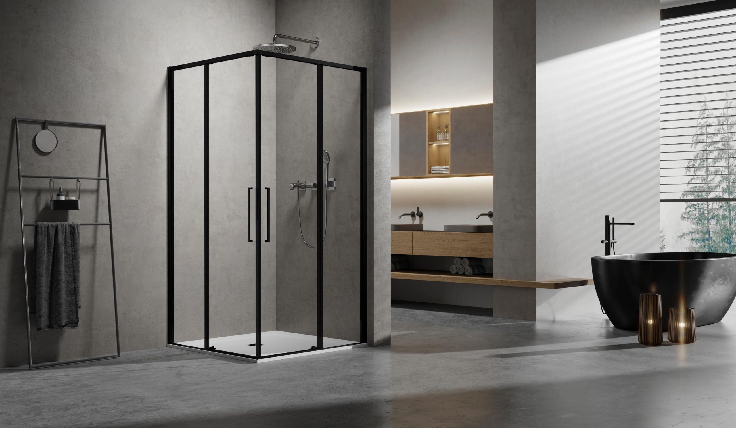 Душевой уголок Vincea Slim 8mm VSS-6SL9010CLB, 1000*900, черный, стекло прозрачное