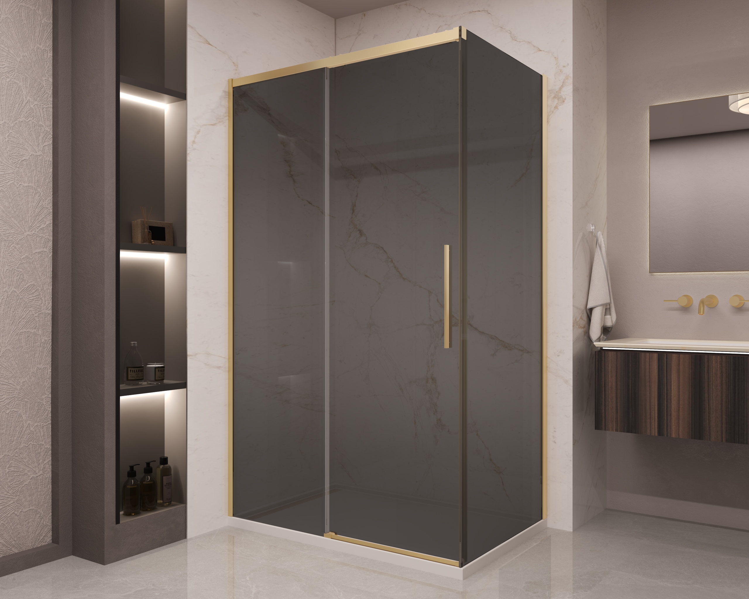 Душевой уголок Vincea Stella VSR-1ST9012CGG, 1200*900, брашированное золото, стекло тонированное