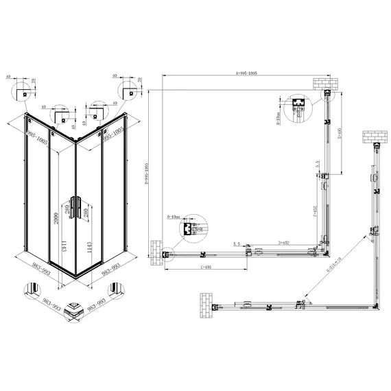 Душевой уголок Vincea Ultima VSS-7UL1010CL, 1000*1000, хром, стекло прозрачное
