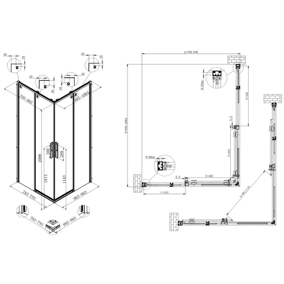 Душевой уголок Vincea Ultima VSS-7UL8010CL, 800*1000, хром, стекло прозрачное