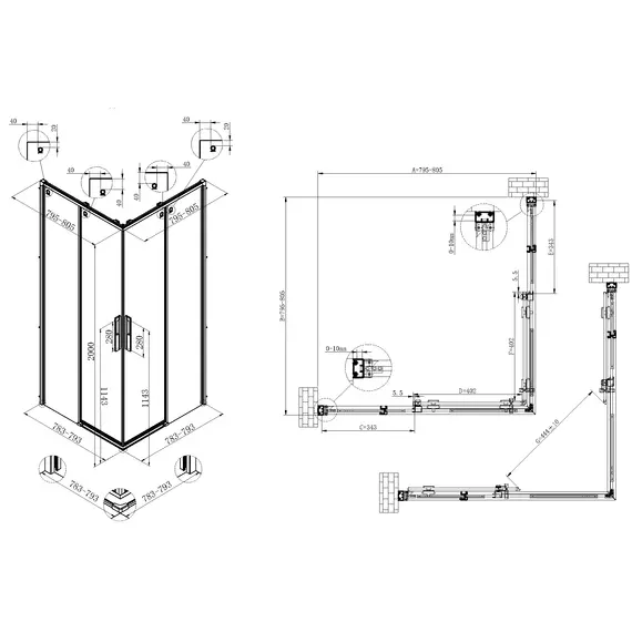 Душевой уголок Vincea Ultima VSS-7UL8080CL, 800*800, хром, стекло прозрачное
