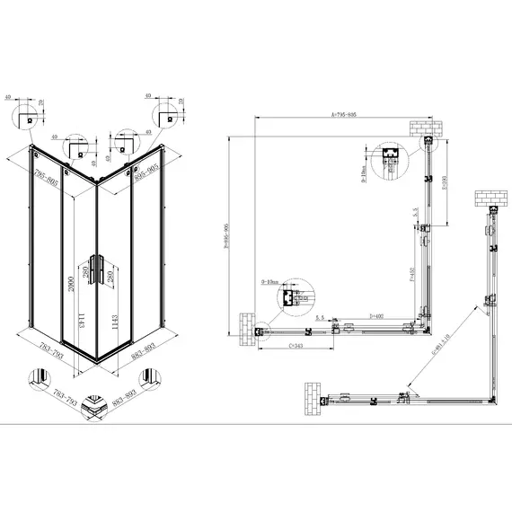 Душевой уголок Vincea Ultima VSS-7UL8090CLGM, 800*900, вороненая сталь, стекло прозрачное