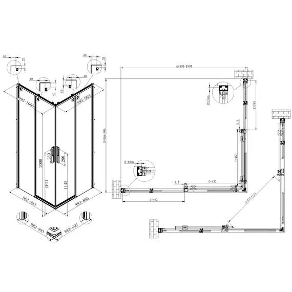 Душевой уголок Vincea Ultima VSS-7UL9010CL, 900*1000, хром, стекло прозрачное