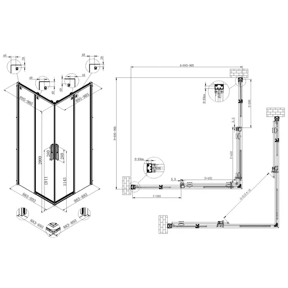 Душевой уголок Vincea Ultima VSS-7UL9090CLGM, 900*900, вороненая сталь, стекло прозрачное