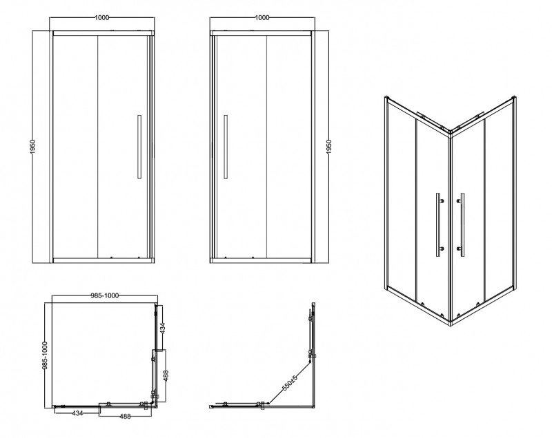 Ограждение душевое ESBANO ESF-100KV-GM 100х100х195