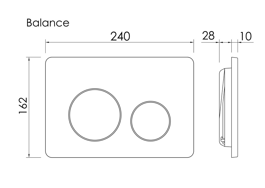 Пластиковая панель с двумя кнопками для полного и частичного слива воды. Покрытие PVD устойчиво к царапинам и сохраняет эстетичный вид при длительной эксплуатации. Совместима только с инсталляцией Balance CN121001.