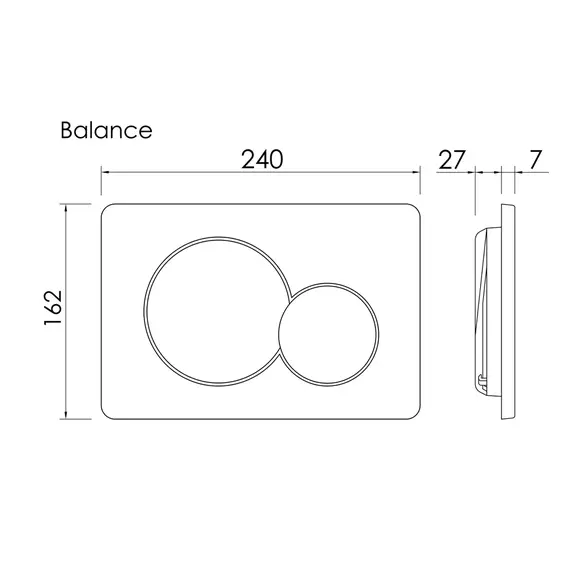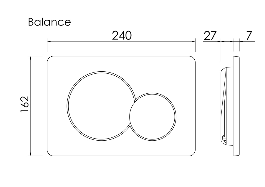 Пластиковая панель с двумя кнопками для полного и частичного слива воды. Покрытие PVD устойчиво к царапинам и сохраняет эстетичный вид при длительной эксплуатации. Совместима только с инсталляцией Balance CN121001.