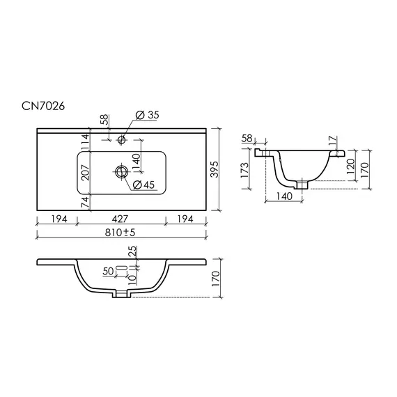 CN7026 Раковина мебельная накладная CERAMICANOVA Compact 810x395x170, белый