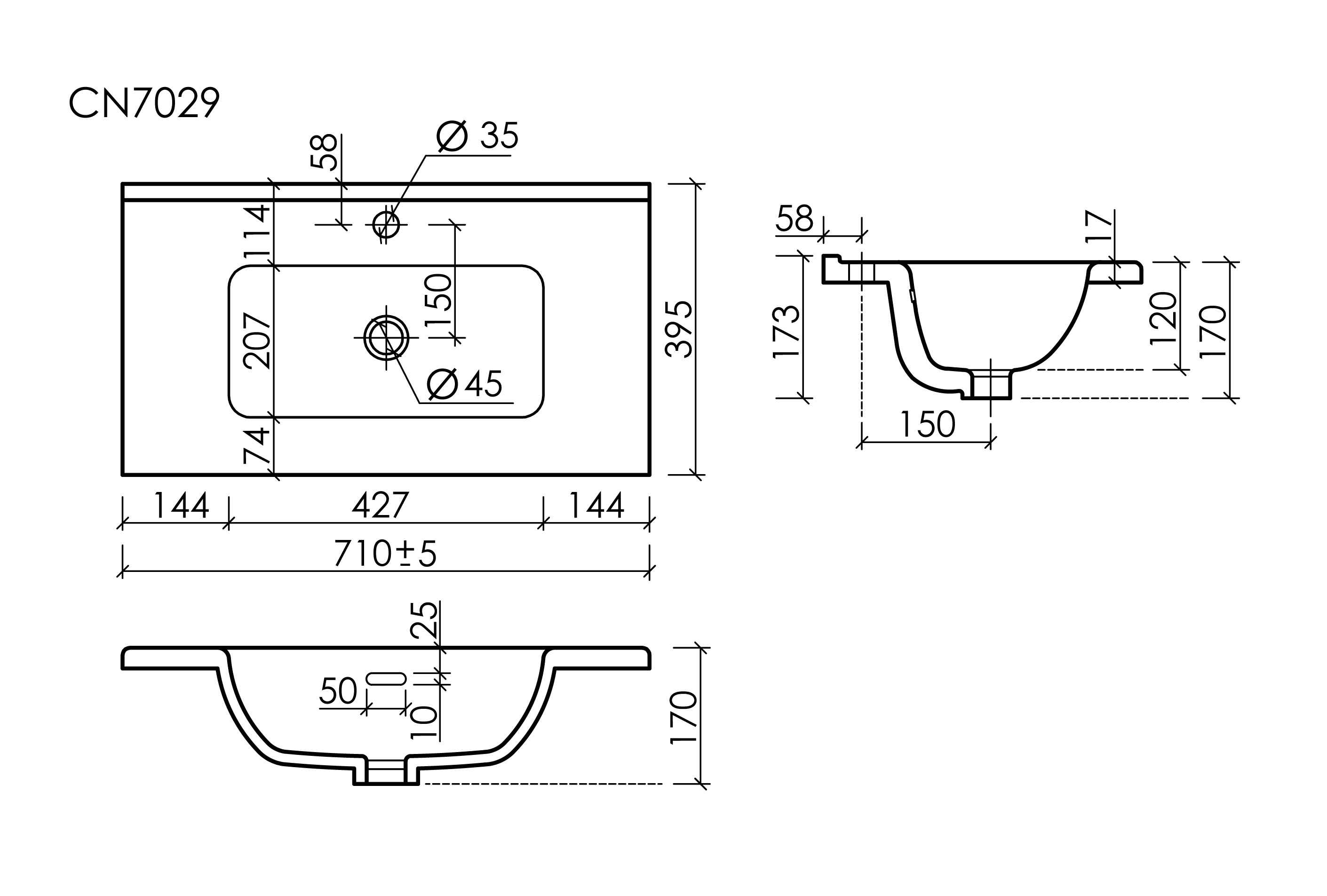 CN7029 Раковина мебельная накладная Compact 710x395x170, цвет белый