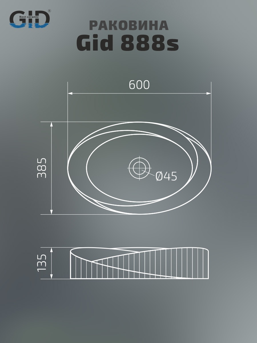Раковина Gid 888s 51223 накладная белая 60x38.5x13.5