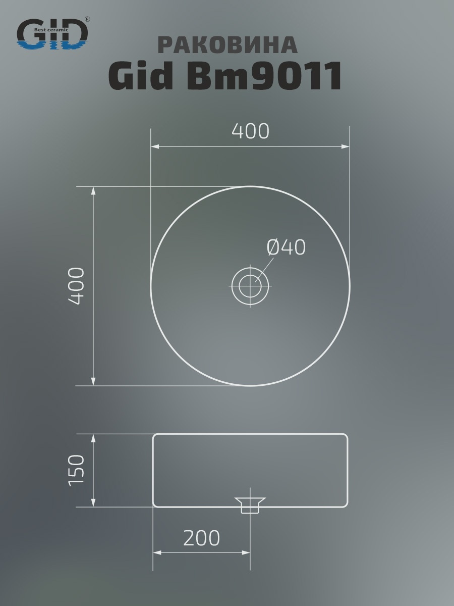 Раковина Gid Bm9011 53368 накладная черная матовая 40x40x15