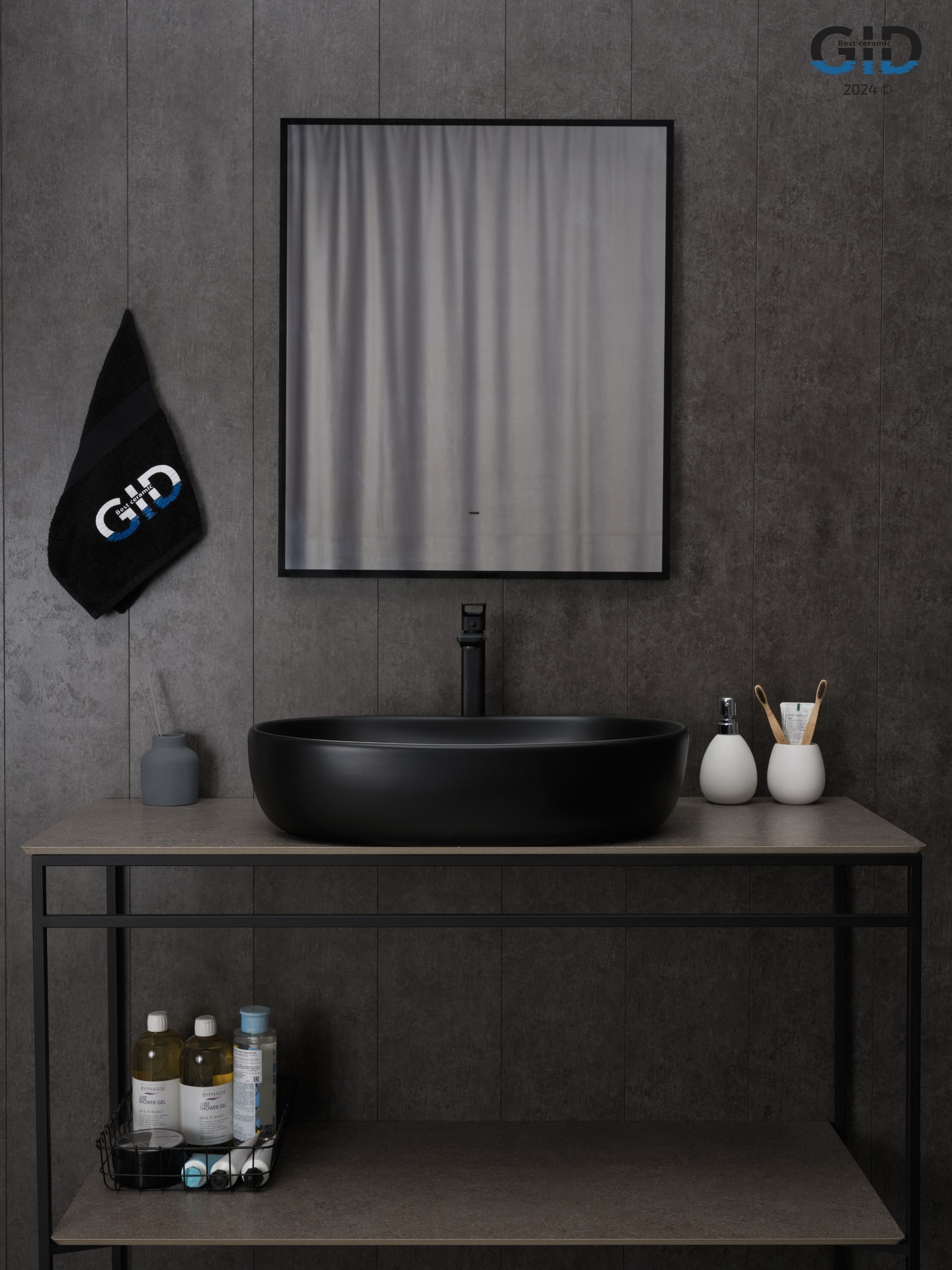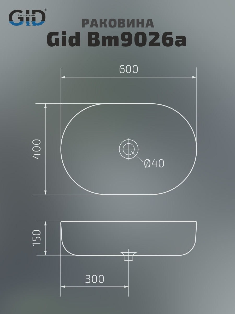 Раковина Gid Bm9026a 53369 накладная черная матовая 60x40x15