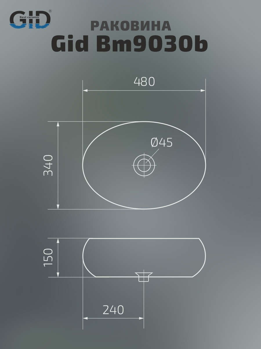 Раковина Gid Bm9030b 53372 накладная черная матовая 48x34x15