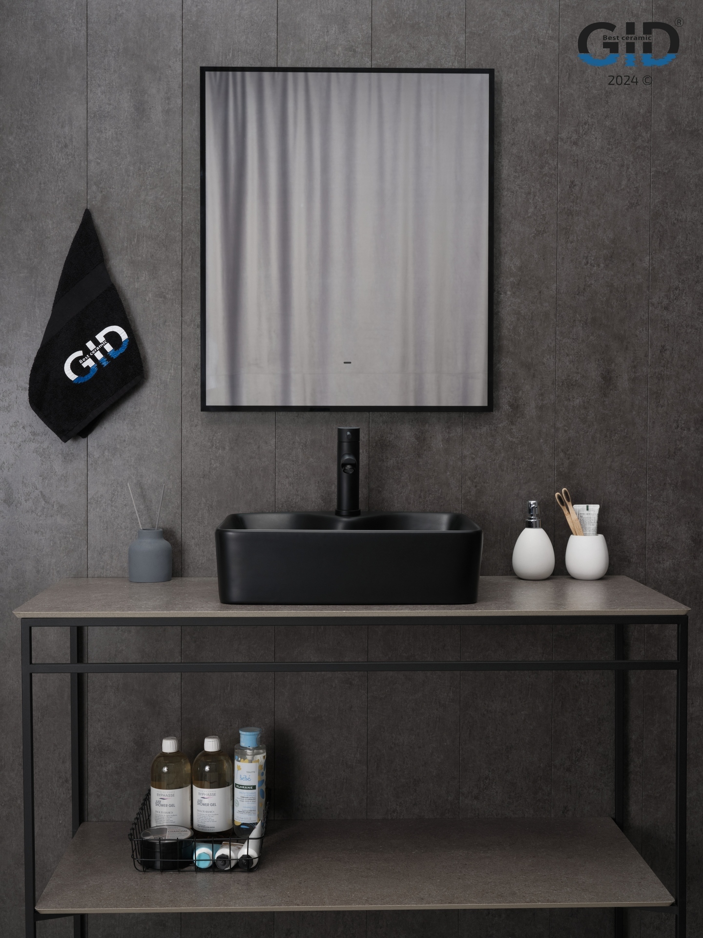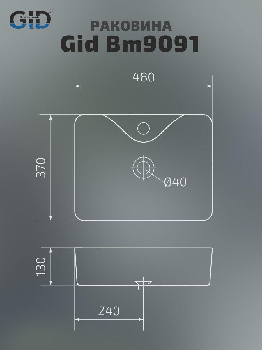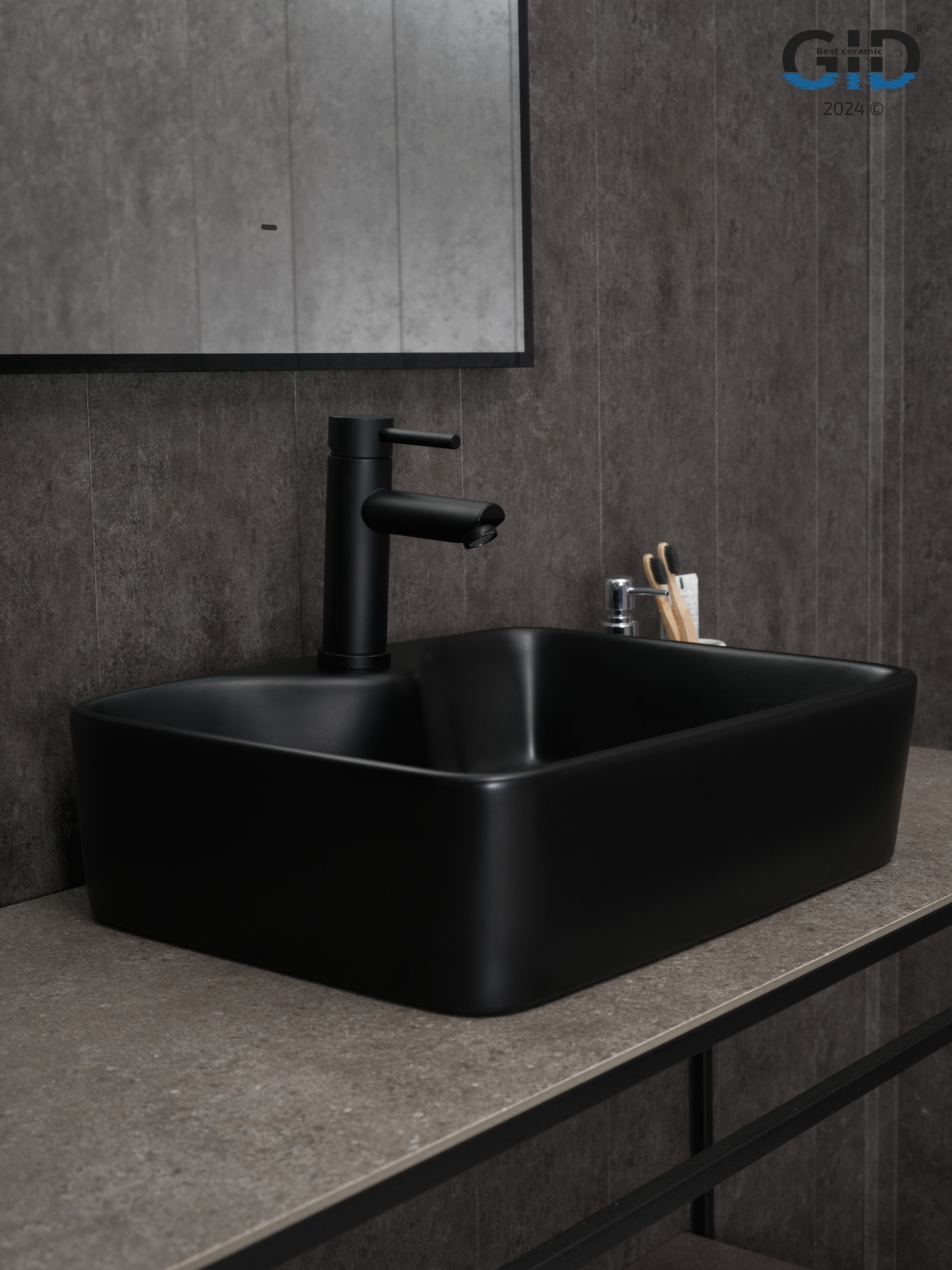Раковина Gid Bm9091 53373 накладная черная матовая 48x37x13