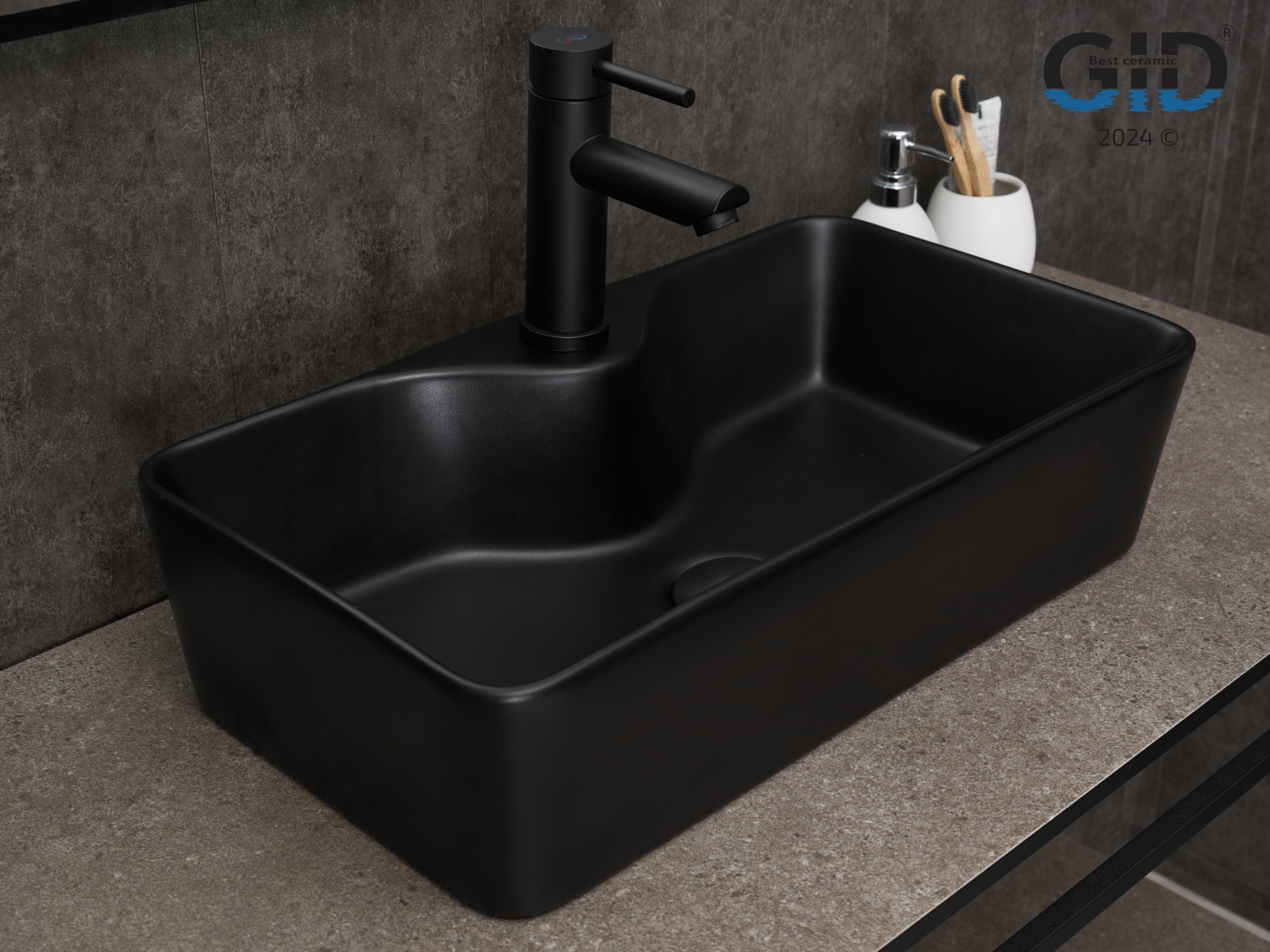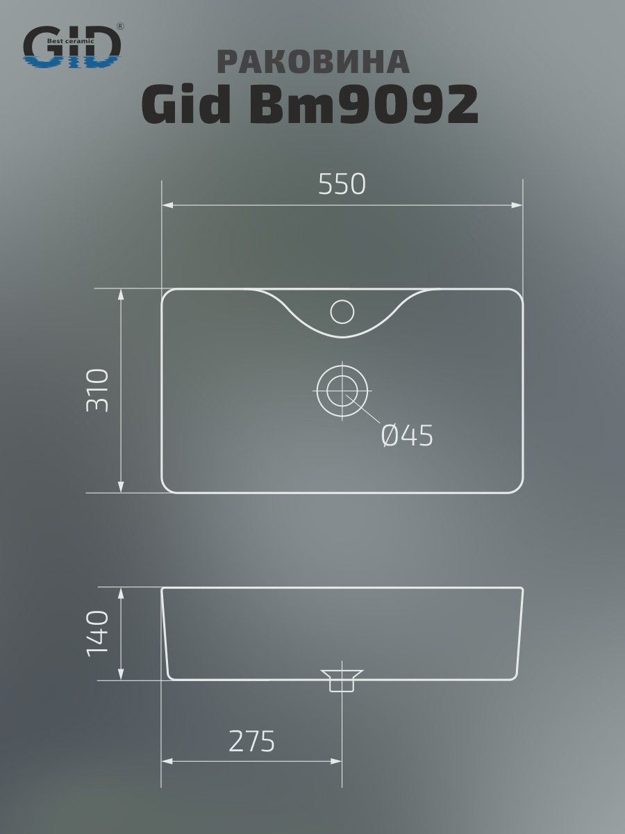 Раковина Gid Bm9092 53353 накладная черная матовая 55x31x14